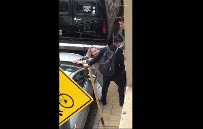 Universitaria Coge 2 Amigos En Plena Calle Al Aire Libre