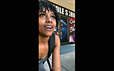 The skinny girl is caught with a dildo in the middle of the street