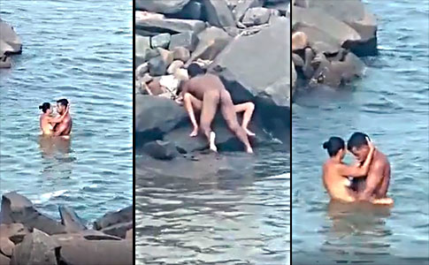 Watching hot couple fucking in the river